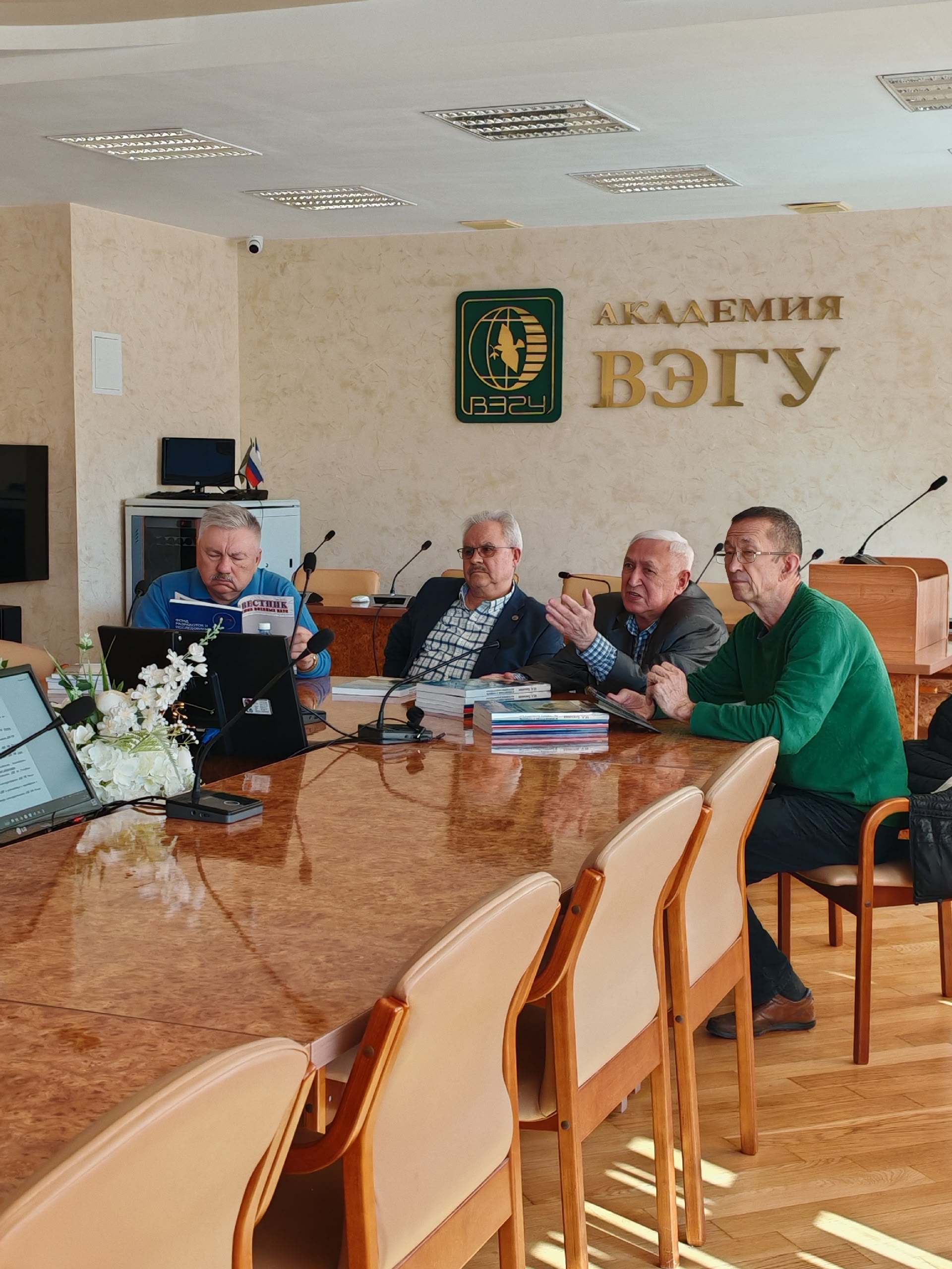 15 апреля 2026 года в Зале Ученого Совета Академии ВЭГУ прошло Общее собрание Регионального отделения Академии военных наук по Республике Башкортостан. На заседании члены Академии подвели итоги работы Регионального отделения за 2025 год и рассказали о работе секций Регионального отделения в 2026 году. На очередной пятилетний срок руководителем Регионального отделения Академии военных наук по Республике Башкортостан избран член Президиума Академии военных наук, действительный член Академии военных наук ректор Академии ВЭГУ Евгений Кадырович Миннибаев.