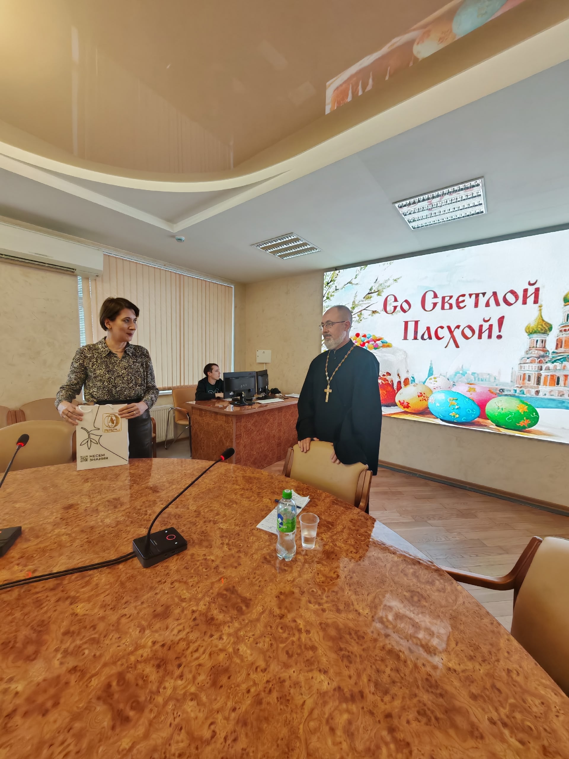 В конференц-зале за праздничным чаепитием в честь Светлой Пасхи, сотрудники, обучающиеся и дорогой гость Академии из Храма Покрова Пресвятой Богородицы Русской Православной Церкви Башкортостанской митрополии Уфимской епархии Отец Дмитрий Коземаслов собрались, чтобы поговорить о самом важном- духовных основах!