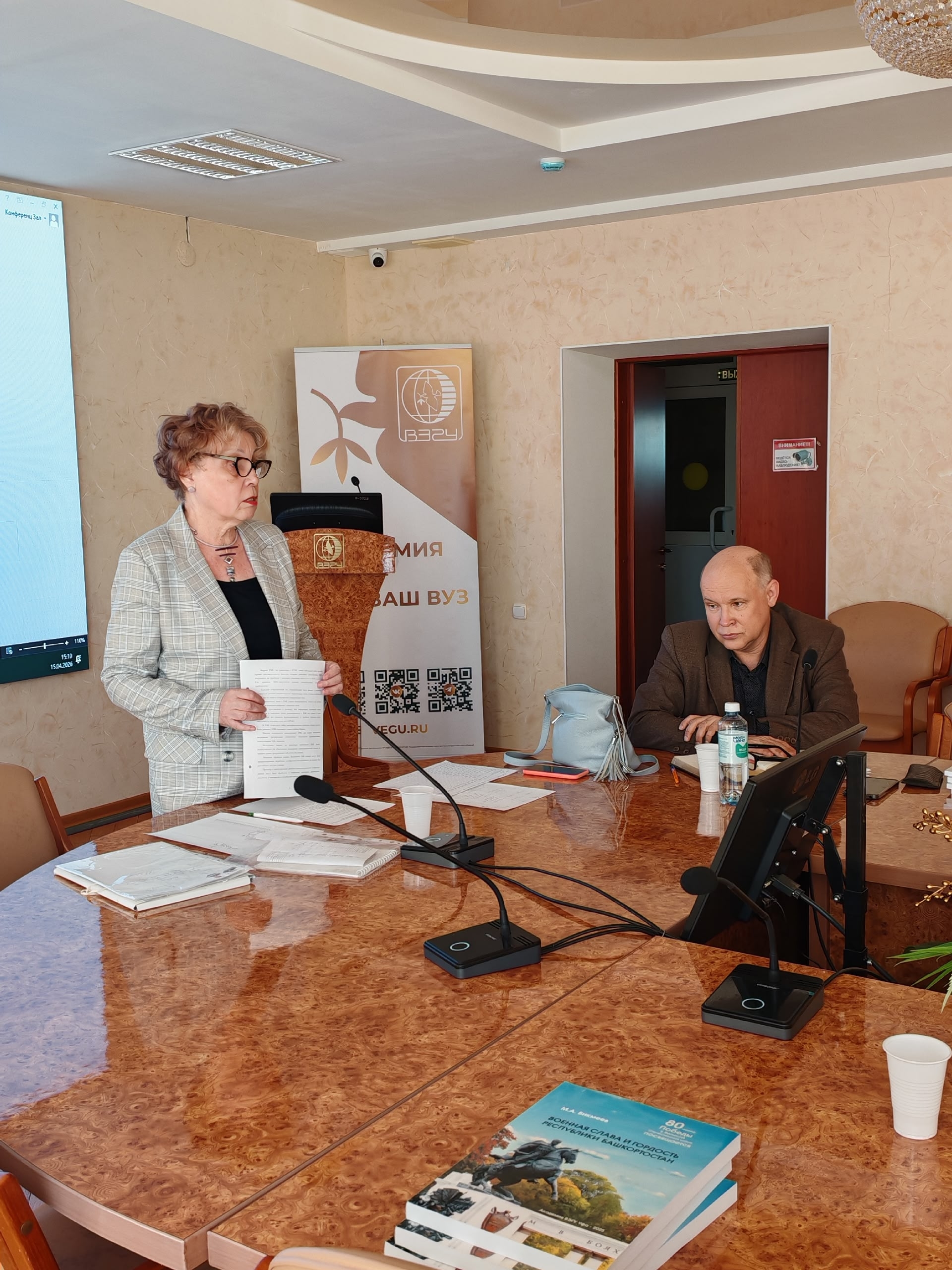 15 апреля 2026 года в Зале Ученого Совета Академии ВЭГУ прошло Общее собрание Регионального отделения Академии военных наук по Республике Башкортостан. На заседании члены Академии подвели итоги работы Регионального отделения за 2025 год и рассказали о работе секций Регионального отделения в 2026 году. На очередной пятилетний срок руководителем Регионального отделения Академии военных наук по Республике Башкортостан избран член Президиума Академии военных наук, действительный член Академии военных наук ректор Академии ВЭГУ Евгений Кадырович Миннибаев.